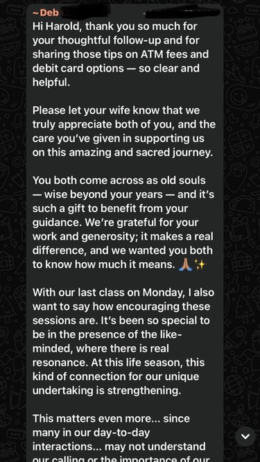 Thanks to Harold and Tiffany, our relocation was well-planned and stress-free. Harold look us through an extensive workbook they created and held our hands each and every step of the way. I didn't know what to expect, but wow! I'm quite impressed and thankful for their international support. You don't know what you don't know.